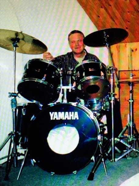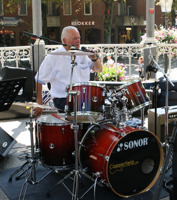 Na verloop van tijd begon m’n inmiddels tot tiener opgegroeide zoon Jos , steeds meer interesse te tonen voor muziek , met name voor drummen . Er werd een drumstel aangeschaft , geoefend en nog eens geoefend , waarbij ik zelf ook eindelijk eens de gelegenheid kreeg “er achter te kruipen . “